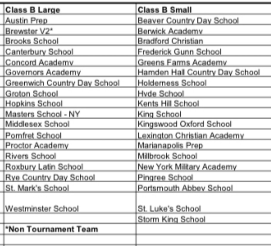 For the purpose of enabling these teams to more easily make their tournament eligible in-class games (as of the 2025-26 season), Class B Large and Class B Small results are combined as if they were only one class. However, the post season tournament fields will be drawn from two different pools, large and small as shown here.